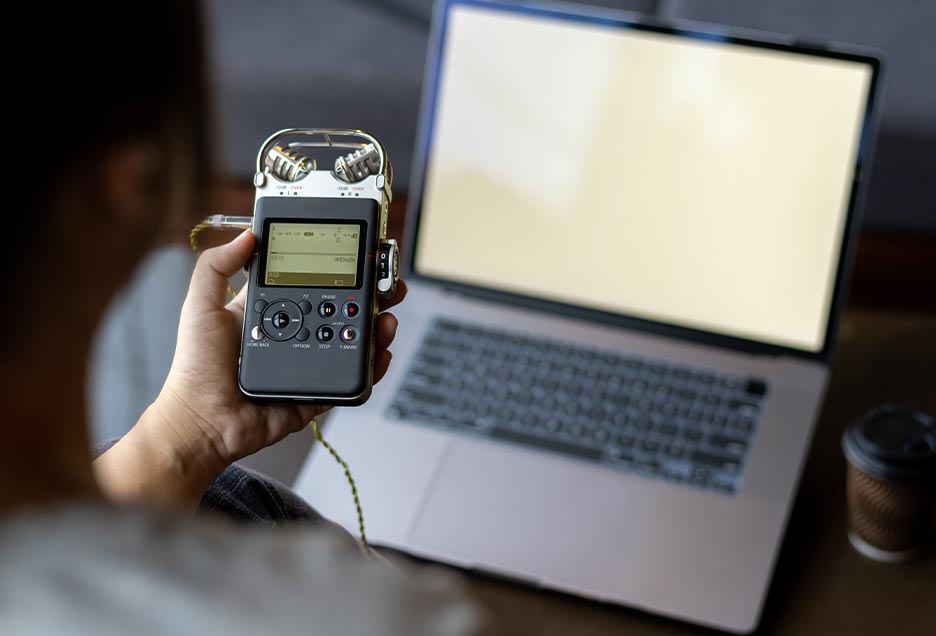 - Computer with interface – a laptop computer, running appropriate music software and used in conjunction with an audio interface, will be an excellent way to create editable recordings. You will, of course, then need to connect microphones to the interface in order to capture sound.