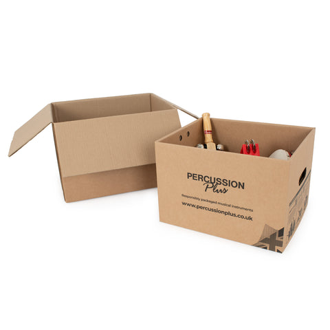 However, as part of the ongoing push towards Sustainable Development Goals, Percussion Plus has developed sustainable cardboard containers to replace these boxes. At 30 litres in volume, these new containers are large enough to fit many of their percussion packs, and can be seen as a direct replacement for the PP696 plastic boxes over which they enjoy several advantages.