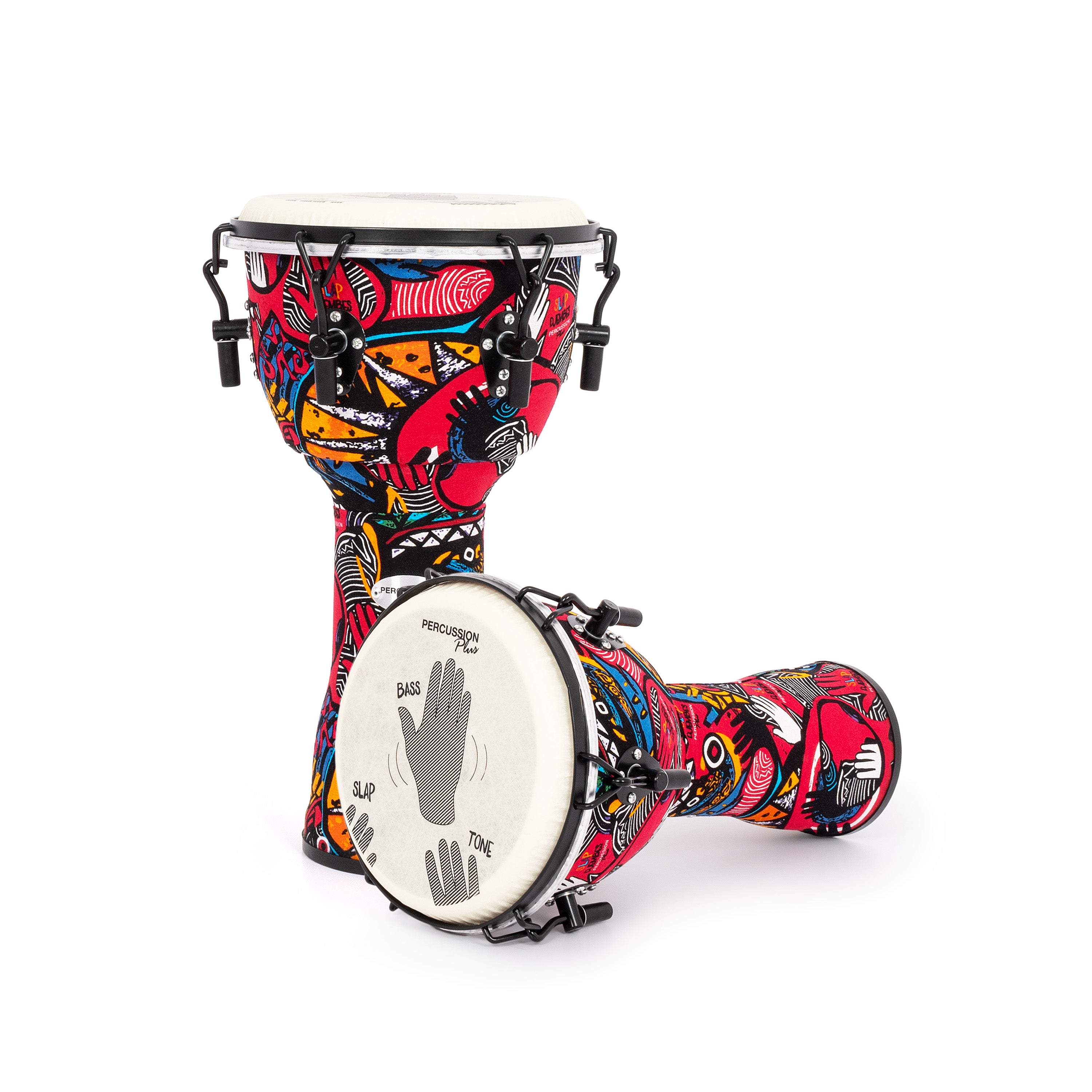 With these Slap Djembes from Percussion Plus, you get a great looking high-quality instrument with an innovative 'how to play' guide printed on the drum skin. There are many different techniques used to produce tones on a djembe and any of these can be used on our djembes. The printed graphic on the head of the drum offers suggested hand positions for the three main techniques on a djembe: Slap, Tone, and Bass