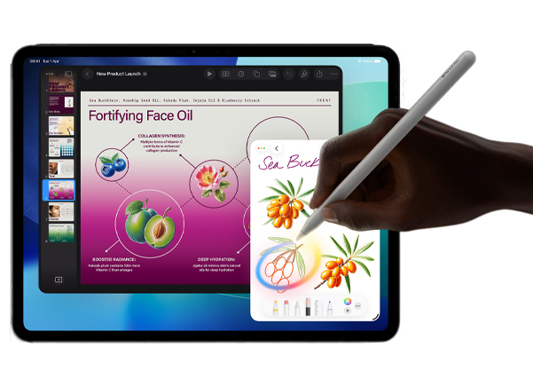 Apple’s latest iPad redefines what’s possible from a creative device, merging professional-grade performance with exceptional portability. Powered by the groundbreaking M5 chip, it delivers extraordinary speed, graphics performance and AI capability, handling everything from multi-layered design work to complex video editing with effortless precision. The immersive Ultra Retina XDR display with tandem OLED technology brings visuals to life in astonishing colour and contrast, perfect for photo editing, film production or content creation on the go. At just 5.1 mm thin, it’s Apple’s lightest and slimmest iPad yet, ultra-portable but uncompromising in strength and battery life. With Wi-Fi 7 connectivity, Apple Pencil Pro and Magic Keyboard support, and iPadOS 26 enhanced by Apple Intelligence and ChatGPT integration, it streamlines every workflow, from planning and writing to illustrating and performing. Combined with studio-quality microphones, advanced cameras and fast-charge technology, the iPad Pro becomes a complete, self-contained creative studio that’s as powerful in your hand as it is on your desk.