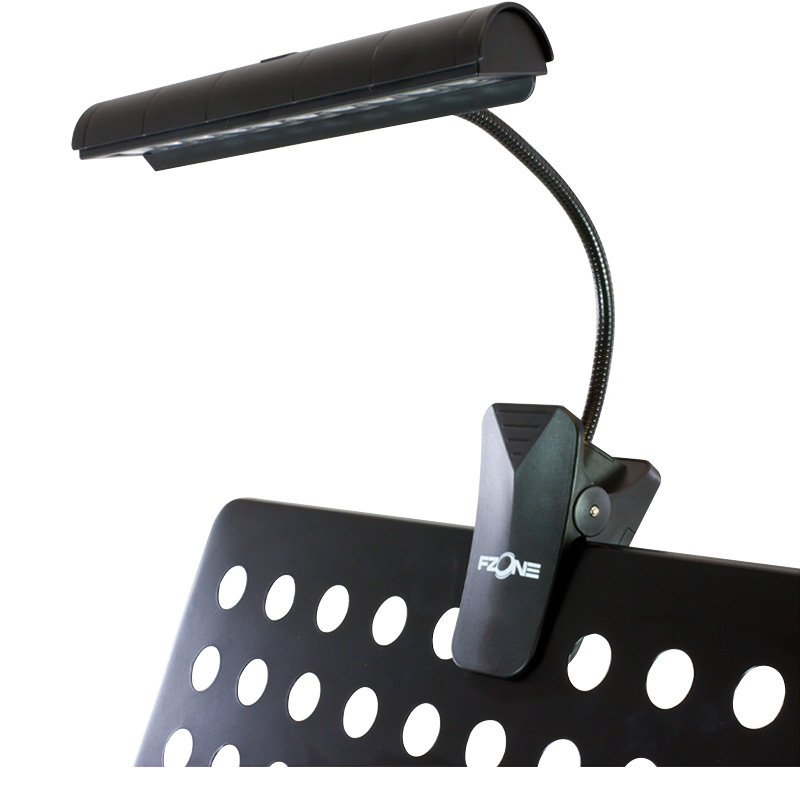 The FZone 10 LED Orchestral Music Light is designed for musicians who need bright, reliable illumination for every rehearsal and performance. Slightly larger than the 6-LED version, it provides extended coverage and enhanced brightness, making it suitable for large scores, multi-page sheet music, and low-light environments. Its durable yet lightweight construction ensures it can withstand the rigours of regular use while remaining easy to carry between venues or reposition on any stand. The strong, flexible gooseneck allows precise positioning of the light exactly where it is needed, while the sturdy spring-loaded clip secures it to almost any music stand. For situations where clipping is not possible, the weighted base provides a stable freestanding option. The wide, even illumination ensures no hotspots or shadows, helping musicians clearly read every note and marking on their scores. Compact, portable, and robust, the FZone 10 LED is suitable for pit orchestras, chamber ensembles, gigging bands, and soloists, providing consistent, professional-quality lighting wherever it is needed.