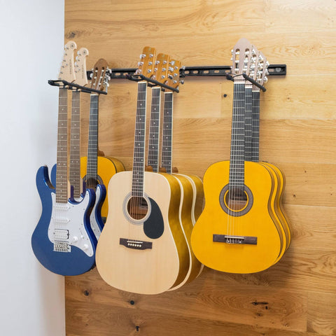 Please note: This wall hanger will hold instruments up to a maximum nut width of 45mm and each hook supports a maximum of 20kg. It is not suitable for full-size classical guitars, or guitars finished with nitrocellulose lacquer.