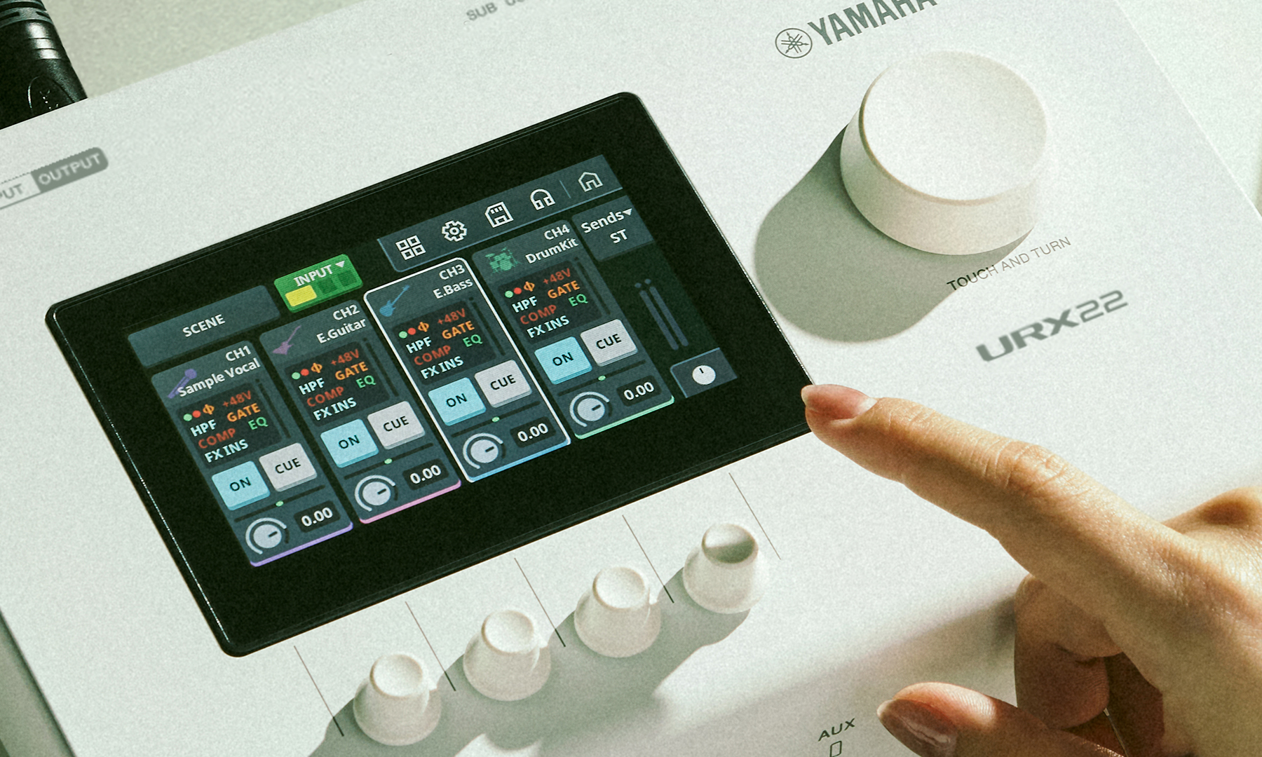 The Yamaha URX22 is a compact digital audio interface designed for users ready to step beyond entry-level recording hardware without adding complexity to their workflow. It combines premium Yamaha audio quality with onboard DSP, touchscreen control, and intuitive physical operation in a streamlined, desktop-friendly design.
